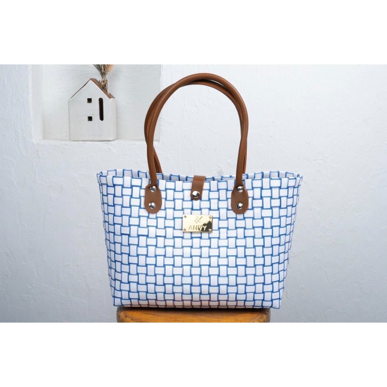 プラかごバッグ CLASSIC white×blue/ホワイト×ブルー